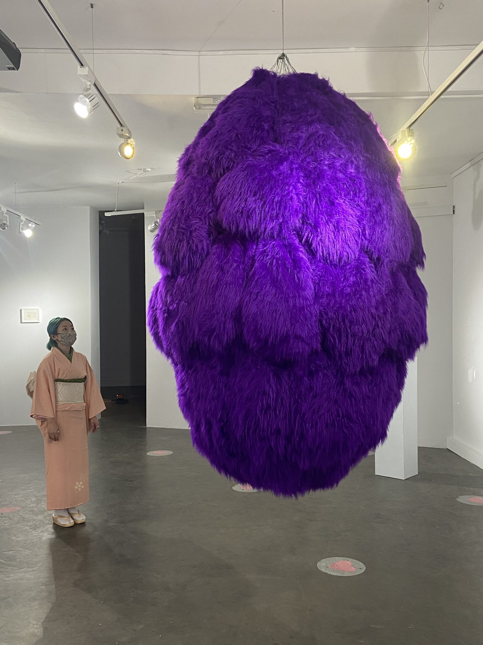 “Egg-Collection Of Emotions”is a large scale installation work with a height of 6m and a width of 3m(max size). Each egg gives a soft feeling of fake fur but what do they feel when they overlap and appear in front of the crowd as a large 6m egg?